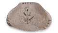 This is a square-shaped mukozuke with a sword-shaped open mouth, two grass paintings on the front and a hinokaki (cypress fence) and kurinawa (bowstring) design around the mouth. The base of the bowl has been carved out to a small size. There is a Nezumi-Shino mukozuke with a similar design.