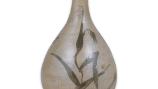 Height 7.1 cm, mouth diameter 16.1 cm, bottom diameter 5.2 cm This round dish was made in the Shuhama style by turning the three sides inward. The glaze is rough, but the bowl is elegant.