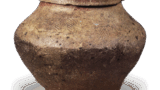 Aiji-ware jar excavated from SE311A, with “Aisho” written in ink just below the mouth rim. In the “Engishiki” (Engi Shiki), “nizakanjo” is included, which refers to a place for stewing and broth, soup, and other foodstuffs. It is thought that an official in charge of food-related matters existed in the area where this jar was excavated.