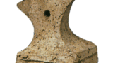 This dish was excavated from a well in SE311B and is thought to date from the Heijo-kyo period. The inner surface of the dish has two characters “Sen” and “Chu” to the left of a bearded figure with a dot on the forehead, and a large circle below written in black ink. On the outer surface, the character “中” is repeated.