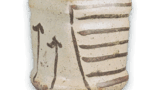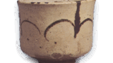 This is another example of a beaten molding, with a flat bottom. It is fired with a thin layer of ash glaze, and is commonly called “Bizen Karatsu” because it has the appearance of Bizen ware. It was probably fired at the Nakanohara kiln of the Fujino Kawanai line.