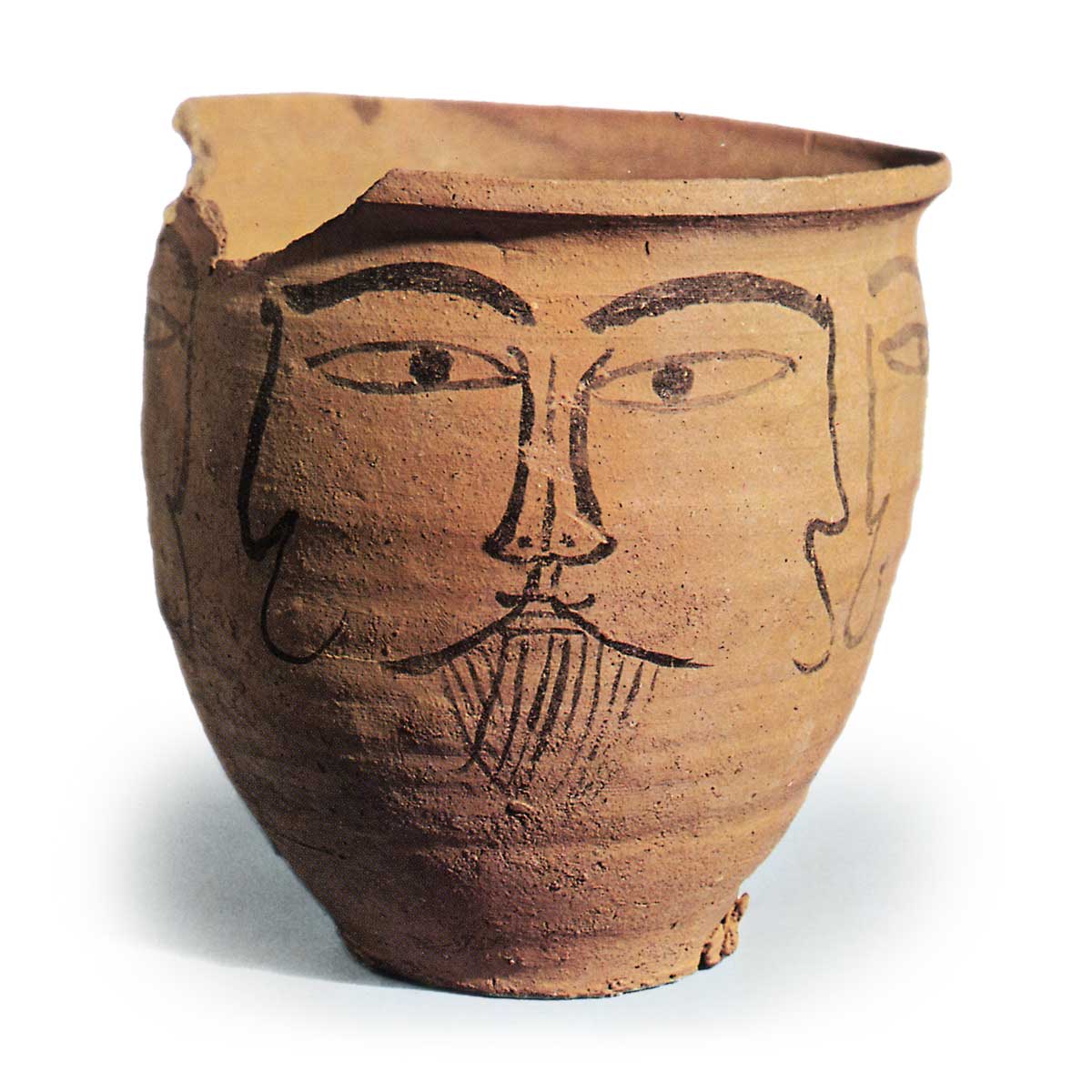 Haji ware: jar with ink drawing of human face.