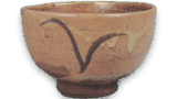 This rather large vessel was probably made as a sake cup used for guinomi (sake cup). It has a zanguri-shape with a hem overhanging the body, and a deep iris-like pattern is painted on two sides of the body. The base is low, and the inside of the base is shallowly and interestingly carved. The glaze is well melted, giving it the appearance of Kizeto, which is used for sake cups. It may have been made by the Ichinose Koraishin Kiln.