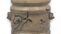 At first glance, this piece appears to be Bizen ware, and is clearly modeled after Bizen ware. It is a tapped, arrow-necked container with a thin glaze over the entire surface, including the bottom, but it has the appearance of a fired ware. The bottom is raised by an ita-goshi (a raised plate), and the hem of the body is decorated with a couple of dots. It is assumed to have been made at the Tani Kiln of the jar shop.