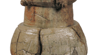 This open-mouthed gourd-shaped container has thick line carving around the mouth and tight body, and the hem of the body is decorated with a “kame” mark. The bottom is flat, and the entire body is covered with a thin ash glaze in the Bizen style. It was probably made by Tani Kiln, a potter’s kiln.