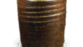 This is a large, sturdy mizusashi, the upper part of which looks as if it could be a yudori-kettle. It has a large ear on both sides and a stepped shoulder. The body is broad and swollen, and the bottom is probably flat. The clay skin is soft and tight, but looking at many pieces, it seems that clay with such a soft and tight skin is often found in old works. This piece was probably made between the end of the Muromachi period and the Tensho period. Compared to the water jar owned by Shao’o, this piece seems to have a stronger Momoyama style, but it is probably an early example of this type of work.