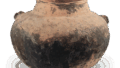 This is one of the few complete black earthenware ear dishes. Fragments have been found at the site of Isawa Castle in Mizusawa City, and it is currently unknown outside of the Tohoku region. It belongs to the so-called “black earthenware B” category, in which carbon is adsorbed on the entire surface of the vessel. Needless to say, ear plates were used as chopstick rests in ancient times.