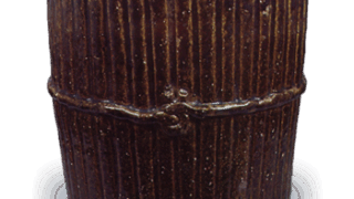 The workmanship is quite noticeable, and the overall construction is thin. The mouth is distorted and the body is also very finely decorated with spatula. The ears on either side of the shoulders are also interesting, and the hem of the body is covered with two rows of spatula, the bottom of which is probably flat. The bottom of the bowl is probably flat. The mouth and shoulders are partly covered in hemp glaze, and some of the glaze is slightly burnished or slightly scorched, forming a kiln discoloration. A horseshoe-shaped mark is stamped on the front, but the mark is not well marked and is faintly visible. It is highly valued among tea masters because of its interesting and varied style. It was probably handed down to the Masuda family.