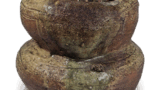 The body is slightly raised at the base. The body is also partly covered with ashes, turning it grayish-brown and partly reddish-brown. A kiln mark is spatula-engraved in the center of the bottom, and there is a large “Roku” engraving on the inside. It may be the work of what is known as the “Rokuzo” style. It is a water jar with an excellent view.