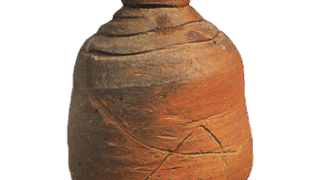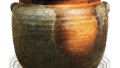 The appearance of this vessel is similar to that of a wide-mouthed kettle, which is also an odd shape, but there are two or three similar examples. The clay skin is soft and tight, and the kiln changes are probably fresh. The ears on either side of the shoulder are interesting, probably in the shape of a tozan (distant mountain). Kiln marks in the style of pine needles are carved in spatula. It is probably made in the late Muromachi to early Momoyama period.