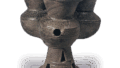 This jar with a stand, which has a short open mouth and neck and a tall, upright lid with a curved back, is known to have been made in the latter half of the 5th century. The lid is regrettably missing. Since these ancient Sue ware jars were all round-bottomed, they were used either with pedestals or on high cup-shaped bases. The body of the jar is made of a rather coarse clay containing pebbles, and the body is rolled up with string and then formed into a basic shape using a thick stripe-shaped hammer, and secondarily formed on the potter’s wheel. These early vases with diameters of over 20 cm were all made by cord-wrapping and wheel-thrown molding, with the mouth and neck, body, and foot each made separately and joined together.