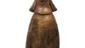 This vase has a cylindrical and straightforward form with a slightly flattened mouth. The clay surface is soft and tightly burned, with a light dusting of ash on one side. The scenery is not very vivid, but it is a vase with a deep wabi taste. The body has three vertical stripes and a horizontal spatula. The front and back of the vase have marks where holes have been filled in, and there is a six-petaled plum bowl-shaped mark next to the holes.