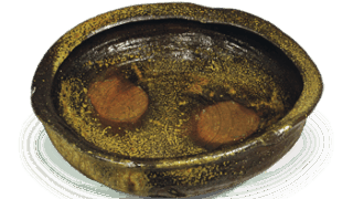 This is a simple flower vase with a wide mouth and a cylindrical body. The body is cylindrical in shape, with a wide mouth and shoulders, and as usual, horizontal spatula marks on the upper and lower sides of the body and vertical spatula marks on the front and rear sides. Ashes are applied from the mouth to the shoulder half of the body, and the rest of the body has been changed to an austere color tone. There are traces of holes that have been filled in on the front and back, and a large kiln mark (Note 45) has been spatula-engraved on the bottom.
