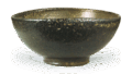 This tea caddy is exactly the same work as the “Soroi” tea caddy, but is shaped like a karamono round jar and has a low round base with a threaded bottom. It is probably a tea caddy in the Ibe style, but it is also estimated to have been made before the Momoyama period (1573-1600). This tea caddy has a neat appearance. The half surface from the head to the hem of the body is covered with a bright sesame glaze, and some of the glaze has been removed. One side has a blackish-brown clay body. A thin cord is tied around the center of the body. The same illegible kiln mark “Soroi” is spatula-engraved on the base. Included in “Taisho Meikikan.