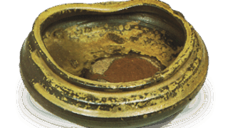 This is probably a kettle with an Ichino-gasa (a hat with a woman’s head on top of it). It is probably of this shape. The exterior of the jar is white with a clear Hidasuki (scarlet tasuki) pattern, and the clay skin is soft and tight. A unique kiln mark is spatula-engraved on the underside. This pottery belonged to the former collection of Mr. Masayoshi Kato.