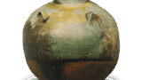 Very few flattened vases are known to exist, and only a few may be counted, but this one was once in the collection of Matsunaga Yasuzaemon, who donated it to the Tokyo National Museum. It is a flat jar with a long neck, and was formed using a spatula. It has ears on both sides of the neck, and the neck is slightly depressed. A thin layer of sesame glaze covers the body from the tip of the shoulder to the tip of the body, and there is a kiln mark on the bottom. There are traces of pig iron holes on the front and back of the body, suggesting that it was once hung on the floor.
