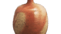 These are probably small sized sake cups, each of which has a slightly long neck and is wheel-thrown. The scarlet color is applied from the mouth to the bottom of the bowl. The clay skin is slightly hardened. A kiln mark is engraved on the bottom.