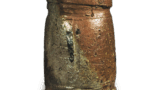 This is probably another large Chinese chive pot, and is probably the most outstanding of its kind. It has a neat appearance, with a clear sesame glaze falling from the body to the base of the body. One side is reddish brown. The bottom is engraved with a line mark of “Tai” (太).