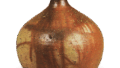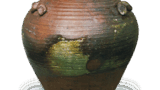 There are very few turnip-shaped cups with a Hidasuki. Among them, this piece seems to be the most outstanding in terms of the softness of the clay and the freshness of the scarlet scarlet color. In particular, the scarlet colored scarlet colored wrappings from the mouth to the shoulders are very vivid. There is a circular mark on the bottom and kiln marks on the shoulder and bottom.