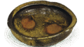 Rising low, the mouth rim opens flat to a tale. It is a large flat bowl in the shape of a jyukuri (gourd), and is an excellent and powerful work of this type. The prospect shows red omissions, and the surrounding area is dark brown and tightly fired. The bottom is partly covered with a sesame seed glaze. The bottom of the vessel has been scraped on three sides with a comb, and it is likely that the legs were attached there, but the legs were lost during firing. Bizen potters call this scraping of the area where the legs are attached “kakiyaburi. A large kiln mark is spatula-engraved in the center of the bottom.