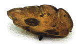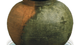 This is a half-moon shaped bowl with a slightly thicker rim and a step up to the prospective view, and the hand is thick and firmly attached. Five irregular circular holes are left on the prospective surface, and the entire surface is covered with a thick sesame glaze, which is also applied to the sides. A kiln mark is spatula-engraved in the center of the bottom. This is a fine example of a half-moon handled bowl.