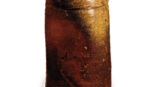 This is a so-called “forehead bowl” as seen in Nezumi-Shino and Shino. It was molded by die-cutting, and has five peony-shaped slits on the prospective surface, and is covered with a thick yellow sesame glaze. The four corners of the bottom have slightly high legs, but this is probably a rare example of Bizen ware.