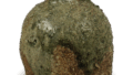 This is a rumored masterpiece believed to be Iga ware. Some of the smaller straddle vases are sometimes thought to have been converted from small vases, but this one was probably originally made for a flower vase. It is also rather thick, with a thick neck and a thick mouth. The shoulders are strongly stretched, and although it is a small piece, it feels heavy and heavy, and has a funny, joking quality. One side is covered in ash and beadlo glaze, while the other side is burnished to a dark brown.