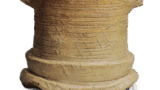 The large spatula is clearly marked with a large arrowhead shape. The rounded and twisted mouth is flattened, the body is stepped to form a broad base, and the bottom is flat. The bottom has a flat bottom. The left and right ears are unusually made with tubular ears.