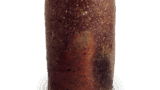 The front body is flattened by pressing down, and the upper part of the body is burnished red, while the lower half of the body has a black burnt surface with three bead-lined glazes running down the sides. There are also two streaks of candy-colored glaze running from the mouth. The upper part of the back is covered with ash and the lower part is burnt purple-black, and there are traces of a hole filled in on the back. The bottom is carved with “ni” and the clay surface is soft and tight.