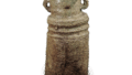 The neck is slightly tilted to the right with a rounded shoulder and six thin vertical spatula marks on the body. The body is covered with six thin vertical spatula lines. The ash has been roughly applied to give it a grayish-gray skin, and the back is reddish brown and tight. Part of the hem is covered with bead dust.
