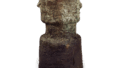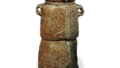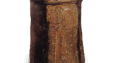 This gourd-shaped vase has drooping ears on its shoulders. Gourd-shaped vases are rare, with only four known so far. The neck is clearly decorated with a hinokagaki pattern, and the upper and lower portions of the gourd shape are decorated with vertical spatula marks. The beadlo glaze on the back is burnished, but the beadlo glaze on the front runs brightly, making this one of the most beautiful Iga ware vases with a fire-lined back.