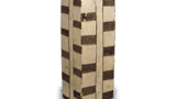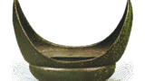 This is a pestle-shaped vase with a tapered body. It has small ears on the top. The upper part has a hinokigaki pattern carved in lines on the back, and the lower part has eight thick spatula marks. The front has a dark burnished surface heavily covered with ash, and a blackened clay surface can be seen around the hem. The back is reddish brown with two streaks of beadlo glaze. As usual, there are two holes on one side and one hole on the other side, but they have been filled in.