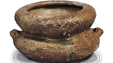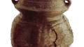 The entire body of this thick suisashi is tightened tightly, the front is flattened, and the rest of the body is irregularly rounded. The front surface is flattened and the rest of the body is rounded. Three vertical spatula eyes are placed at the top and bottom of the front surface, while the back surface has four spatula eyes at the top, three at the bottom, and two horizontal spatula eyes at the bottom, which are placed at the top and bottom. Large ears are attached on both sides. The front is covered in ash and has a shallow grass-green beadlo glaze, while the back is reddish brown and the mouth is also covered in ash. The back of the bowl is reddish-brown, and the mouth is also ash-drenched. Unusually, the lid is accompanied by a joint lid.