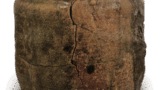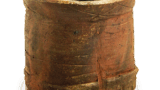 The shape of the vessel is a simple sun-doro form, slightly thinly molded in the shape of a sumac tree. The clay is soft and dark brown in color, with a brownish-brown glaze covering the front mouth and body. The bottom is flat and shows a soft base.