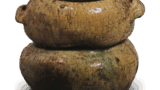 It has a single-layer mouth with a gentle bulge from the mouth to the base of the body and a flat bottom. The bottom is flat. There is no ash on the surface, and the upper surface is softly burnished with a warm reddish color. The back of the vase is decorated with a kingpin, but it is not clear whether or not it was made as a flower vase. It is thought to be one of the oldest works of this type.