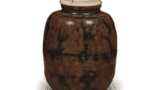 This tea caddy has a low, slightly outward opening with a clear shoulder, and is covered with a grass-green ash glaze from the mouth to the shoulder, the front is lightly charred, and the hardened clay skin has a bright reddish hue. The front surface is lightly charred, and the hard, tight clay skin has a bright reddish hue. It may have been named “Harukoma” in reference to its tight appearance.