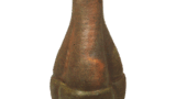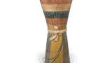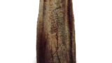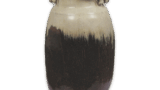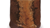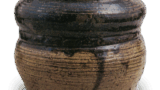 The back of this vase is engraved with the words “Nagaroku hachinen” in thick, simple spatula carving. The zanguri-style cord-shaped form of this piece is a clear indication of the mood of the period, and is not found anywhere else in Tamba ware from the late Muromachi period (1333-1573). The glaze is lightly applied from the mouth to the base, and the clay skin is dark brown. The front surface is decorated with a spatula design. This is the oldest Tamba ware flower vase and was probably donated to a temple. The back of the vase is decorated with an iron decoration.