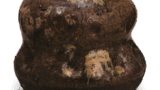 The entire piece is thickly molded. The large mouth is distorted and the rim of the mouth is distorted. The clay is dark brown with slight ash. This vase is used as a hanging flower vase, and is rare among Tamba-yaki vases. The flat bottom is rough.