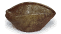 It may have been made as an incense burner, as it has small legs on three sides of the bottom, but is now used as a water jar. It is thick and made in a bag shape, with the open mouth held in eight directions to form a ring flower shape, with a line engraving of “rice” on the prospective value. The mouth and shoulders are covered with a dark brown natural glaze, and the clay skin has a brownish finish. This is a noble piece among Tamba ware of the Momoyama period.