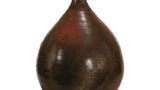 This water jar is similar in appearance to an Iga ware water jar and was probably influenced by it. The mouth is wide, and the base is bulging out to form a pouch, with ears on both sides and a vertical spatula on the body. There is a large crack at the hem. The glaze is thickly applied over a layer of dobe, but the glaze has melted to a glossy finish, and there are seven glaze drips along the hem. This is another excellent Tamba mizusashi, probably made in the early Edo period.
