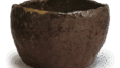 This is a large tea bowl with a lathe and a spatula after being thrown on the potter’s wheel, with a warped mouth, chamfering-style spatula around the waist, and a wide base with tatami mats. It has a wide base with tatami mats. This is a powerful bowl for a Tamba ware tea bowl. The entire surface is painted with dobe, and covered with ame and ash glaze, which may have been influenced by Iga ware.