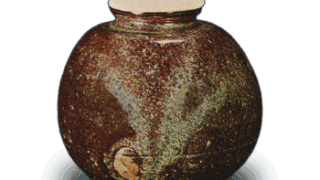 This Momoyama-style tea caddy is similar in style to a Seto tea caddy. It is a Momoyama-style tea caddy, probably made in the late Keicho, Genna, and Kan’ei periods, as well as the previous painting. The body is hemmed with a spatula around the waist. The bottom of the bowl has an ito-bottom. The bottom has an ito (thread) sole. Some parts are decorated with ash and others with seto. This is an excellent example of a Tamba ware tea caddy. The body has fine vertical stripes on three sides. On the front of the lid, there is an inscription by the ninth generation Omotesenke Ryōrōsai: “Tamba Chāyuri-Ebiju Left (Hanashō)”.
