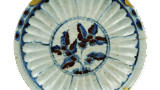 Many of this type of white porcelain with a white slip pattern were made using a paper pattern or a stencil, but this piece seems to have been made by applying iron lees to the entire surface, scraping off plovers, dust, grass, etc., and then applying a white glaze after applying staining.
