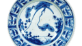 This is a small bowl with a mouth diameter of about 10 cm. The shape of the bowl, with the base slightly larger than the diameter, and the mouth with an edge bow, seems to be somewhat in the style of Tenmoku tea bowls. This type of bowl has been excavated from the Momoka Kiln and Milikoba, and may have been newly used in place of the ceramic tenmoku. The body is carved with a Shinogi pattern, and the mouth is covered with a thunderbolt pattern in the shape of a bridge, and two “Fuku” characters are written on the two sides of the body. Although it is a small bowl, the color of the underglaze blue is truly brilliant, suggesting that high quality gosu had been imported at that time.