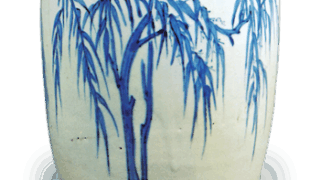 This small dish was excavated from the Hyakumon kiln. The rounded rim is raised slightly shallowly, and the base is small in comparison to the diameter. The design of chrysanthemums in a flowerpot on the surface of the plate is simple but has a highly painterly style. The expression has a flavor similar to that of Yi Dynasty blue-and-white porcelain, but the influence of the Kosotsuke style of the Tengei period at the end of the Ming dynasty can already be seen.