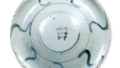This small dish seems to have been fired at the Hyakumon kiln, and similar fragments have been excavated from the Hyakumon kiln. The white egret design is depicted in the foreground and surrounded by eagle feathers. Such a design with a white egret pattern and hawk feathers has only been excavated from the Hyakumon kiln. On the reverse side, a design resembling autumnal leaves is also depicted in underglaze blue on three sides. The tatami mats on the high stand are coated with a sandy texture. It was probably made around the end of Kan’ei period.
