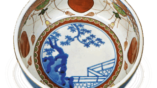 This dish is decorated with the same landscape design as seen on large dishes made by the Kuomuta Sambenda Kiln, etc., in a somewhat stylized but richly decorated style. It should be noted that the design is similar to that of Ko-Kutani landscape paintings.