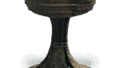 This is an uncovered cup similar to the former type, with a long, extended base that is relatively thick compared to the upper part of the cup and is not extended at the bottom. Two steps are placed on the outer surface of the upper cup, and the space between the steps is filled with wavy patterns in comb-like patterns. The base has long, narrow watermarks on three sides, and the surface of the vessel is well marked with oyakimoku.
