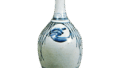 This is an early Imari Sometsuke ware of a slightly later period, and is estimated to have been made between the end of the Kan’ei period and the Meireki and Kanbun periods. The body is covered with a horizontal floating pattern, and the neck is narrowed in a unique shape, which is rare for a sake cup. A large tree is depicted on one side of the body, under which three Chinese children are playing and a bird is flying in the sky. A peony arabesque design is painted on the shoulder with spontaneous brushwork, and the neck is decorated with ground patterns, such as blue sea waves, in a pattern of “shawari” (a Japanese word for “blue sea wave”).
