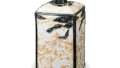 The glaze around the mouth and over the shoulder is lapis lazuli glaze, and the glaze from the shoulder to the base is iron glaze. This is a so-called “chanrini-shaped” Tokutoshi, small and extremely elegant, and was probably made between the Meireki and Kanbun periods, a little later than the early Edo period. This type of piece was made with lapis lazuli glaze, and other pieces of various sizes were also produced. The inside of the stand is covered with white glaze and there are some penetrations.